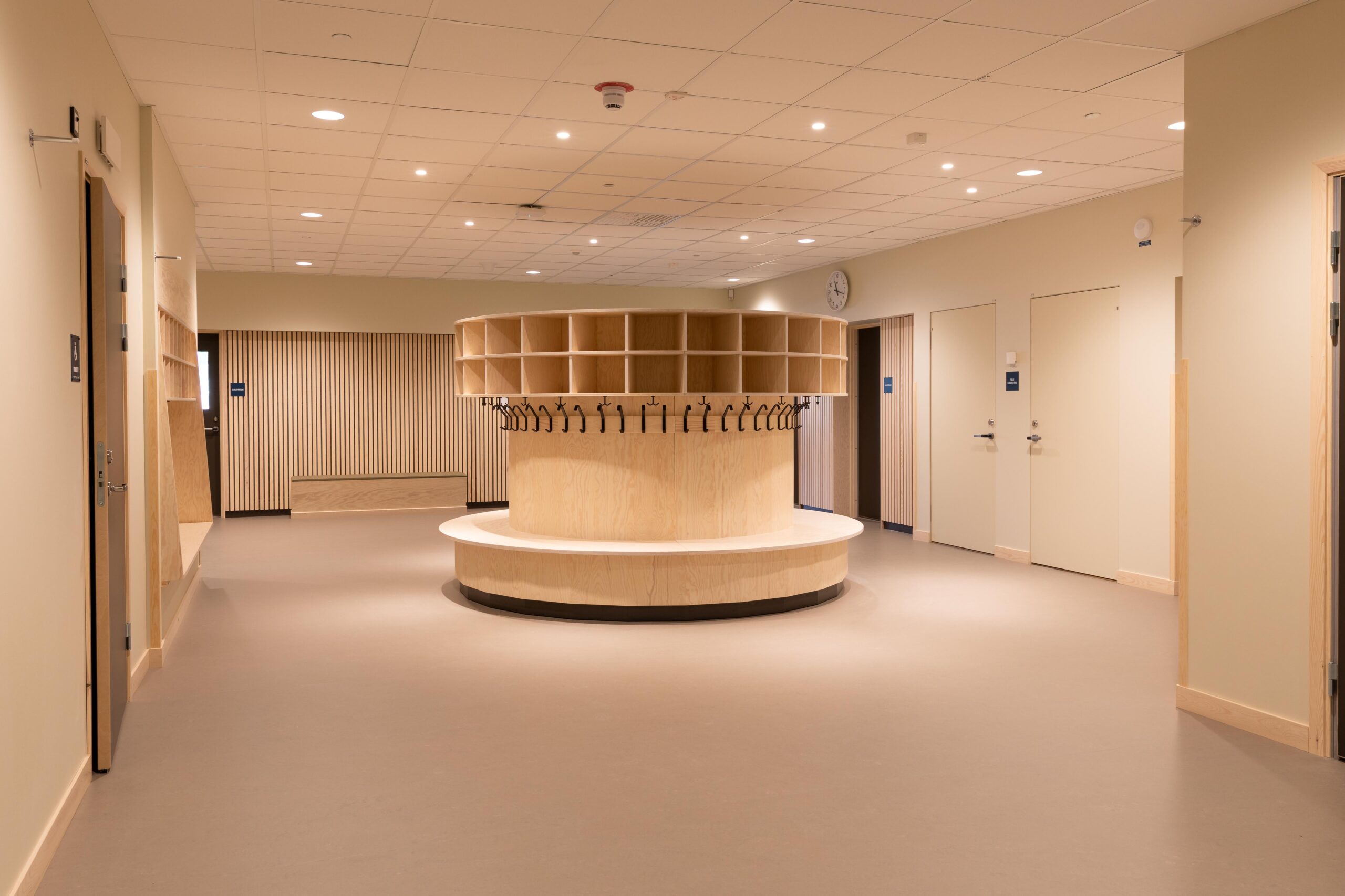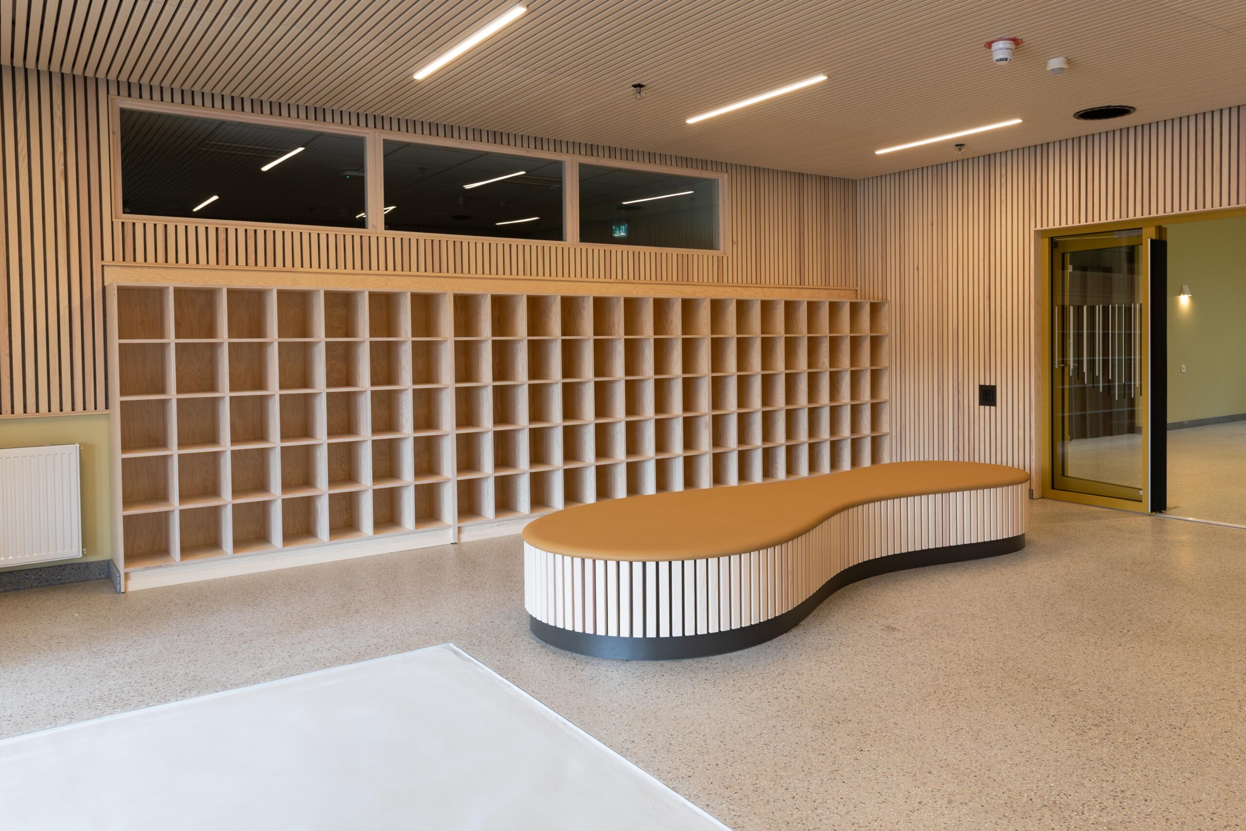 Invändigt har skolan en arkitektur som främjar trivsel och studiero.