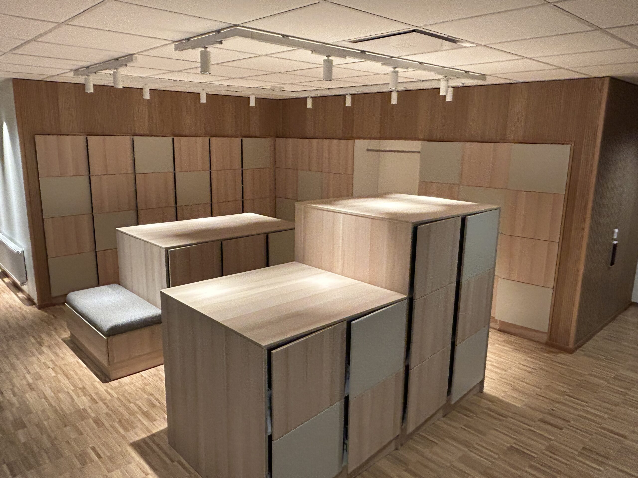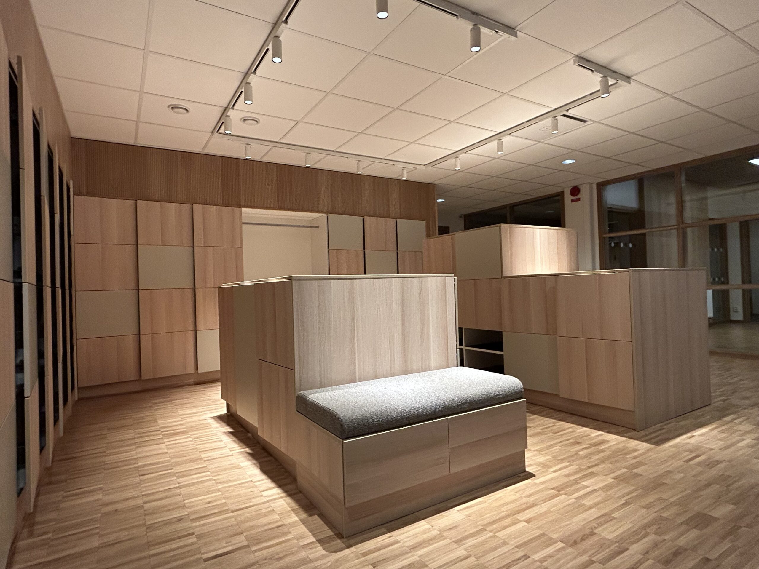 Projektet omfattar totalrenovering av 1500 m2 av Vöfabs lokaler på Linneuniversitet i Växjö. Här ska en del av universitetets administrativa personal arbeta i en miljö med mycket inslag av trä.